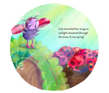 In the misty mossy morning, deep in a redwood grove, Lulu ladybug has a nagging feeling that she doesn't have enough spots. Other ladybugs have many spots, but she only has two. Two measly spots!